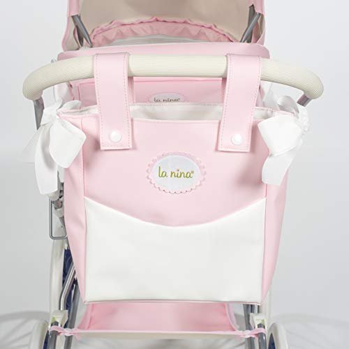 La Nina- Cuculo Classico Rosa/Bianco Ecopelle Passeggino Bambole, Colore, 52 cm, 65048