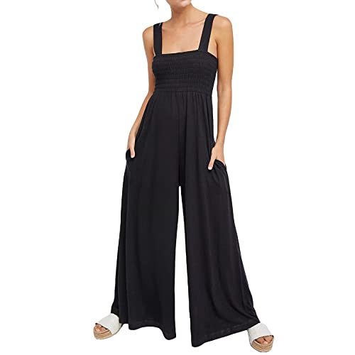 NINALUNA Tuta da donna allentata casual High Street pantaloni larghi senza maniche plissettate casual body colore:, Dimensioni:, Nero, XL
