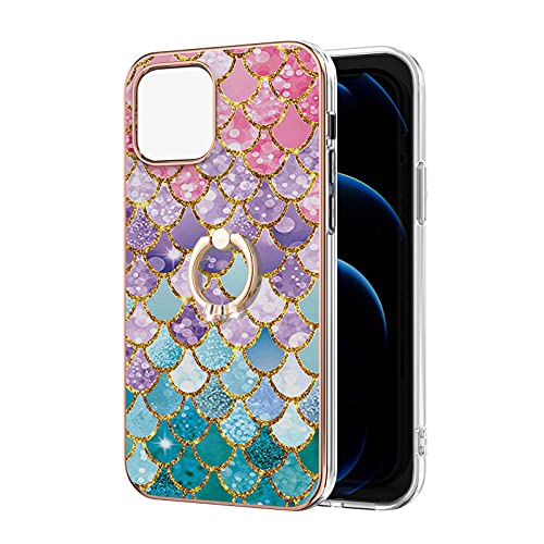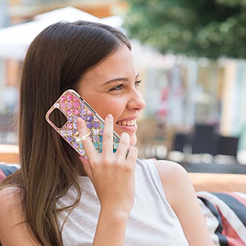 Nincyee Custodia morbida in TPU per iPhone 13 Mini, con farfalla di marmo colorata IMD placcatura caso con cavalletto con anello di diamante