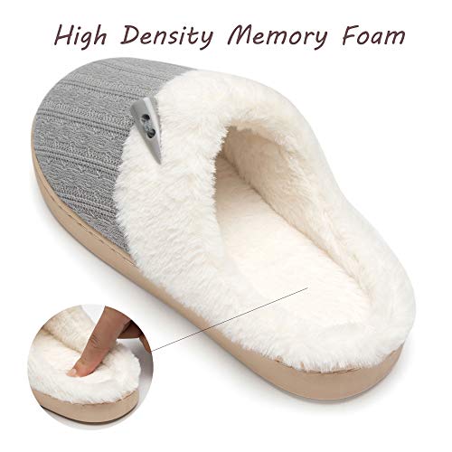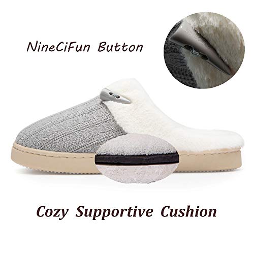 NineCiFun Pantofole da Donna Comfort Memory Foam Pantofole morbide e pelose Scarpe da Letto Calde Pantofole Antiscivolo(EU42/43,Grigio)