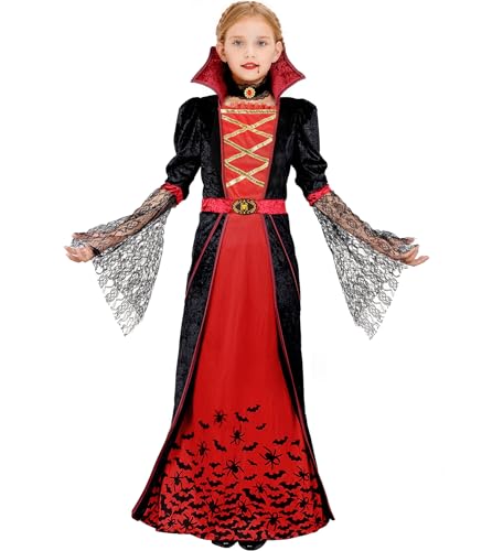Blu Ninfee Costume da vampiro per Halloween, per bambine, costume da vampiro gotico, con collana, costume di Halloween, per carnevale, cosplay, feste a tema, L (10-12 anni)
