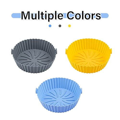 Ninge Confezione da 3 cuscinetti per friggitrice ad aria in silicone, accessori per friggitrice ad aria antiaderenti riutilizzabili, sicuri per alimenti, facili da pulire (grigio + giallo + blu)