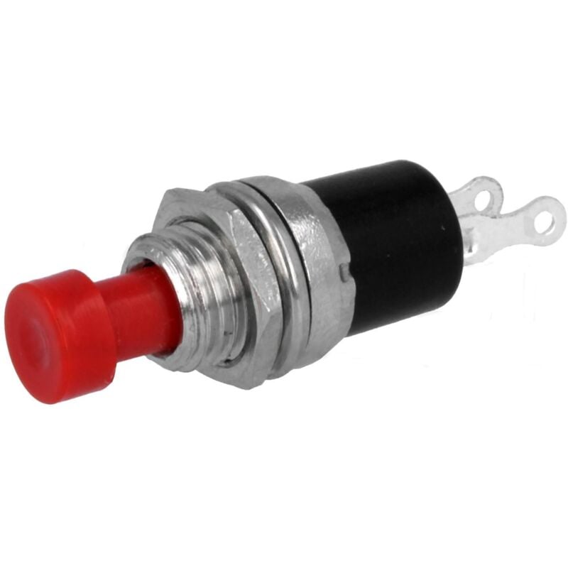 Pulsante NO normalmente aperto Premere il pulsante 1 posizione SPST-NO Modo operativo: OFF-(ON) Aperto a riposo 1 A / 250 V AC Pulsante rosso Temperatura tra -25...70 °C Dimensione foro di montaggio: Ø7 mm Dimensioni del corpo: Ø9,2 x 28,5 mm Altezza sopra il pannello: 12 mm