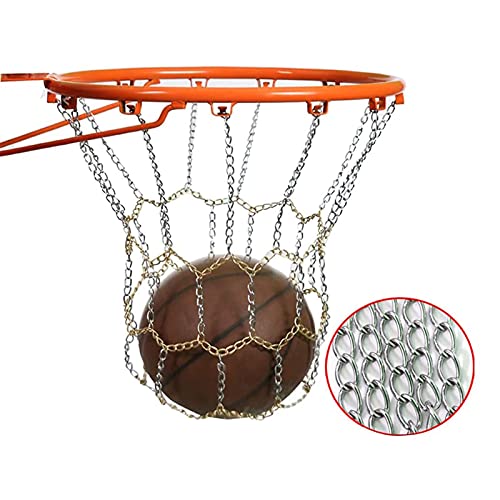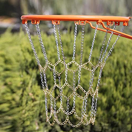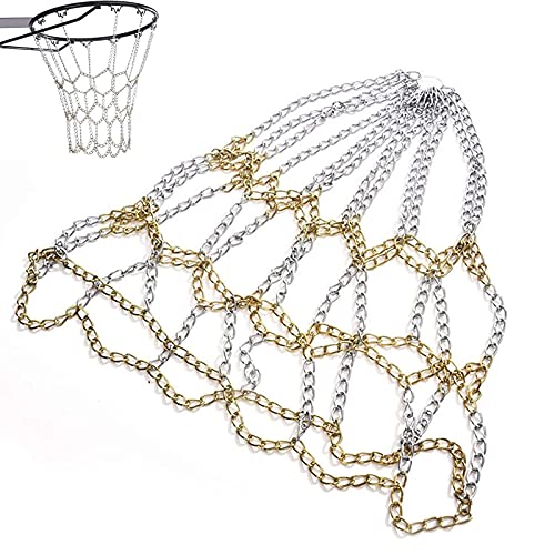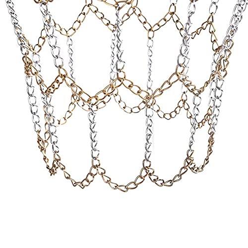NININI Rete da Basket in Metallo,Rete da Basket Durevole, Rete da Pallacanestro Zincata, per Canestri Standard,Utilizzato in Campi da Basket al Coperto, Campi da Basket del Campus(Oro,Argento)