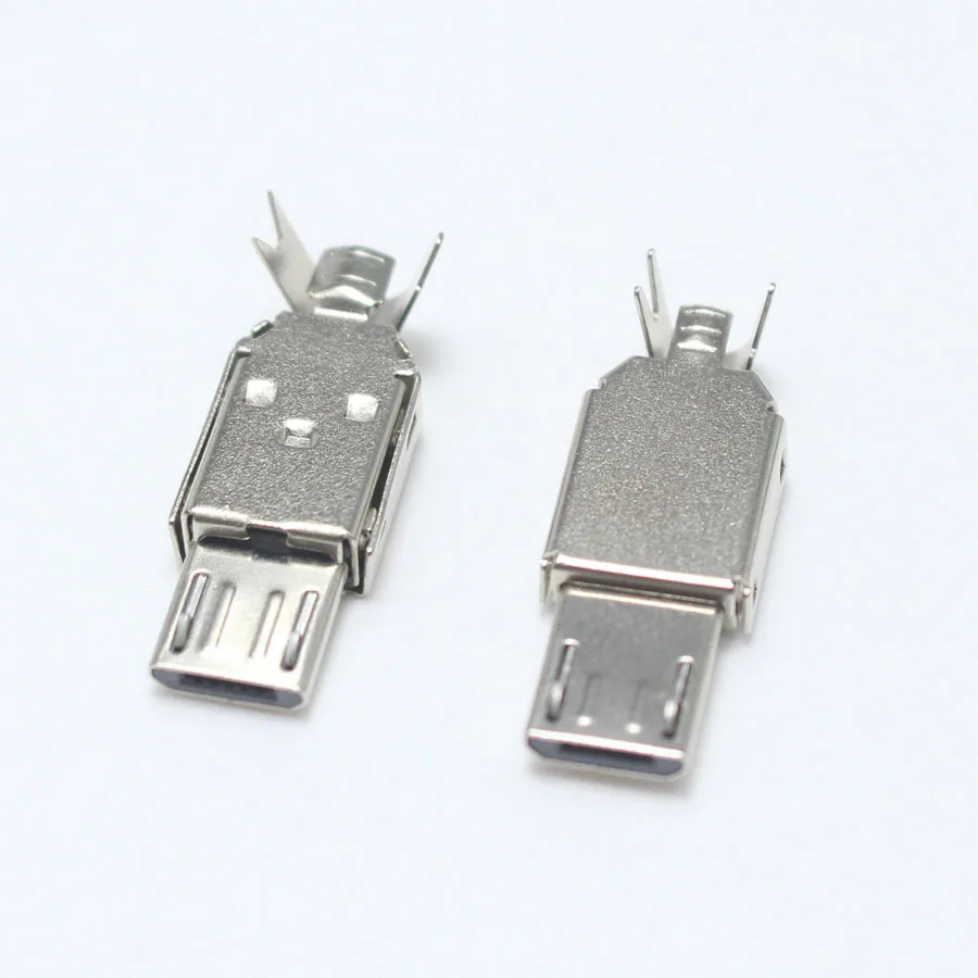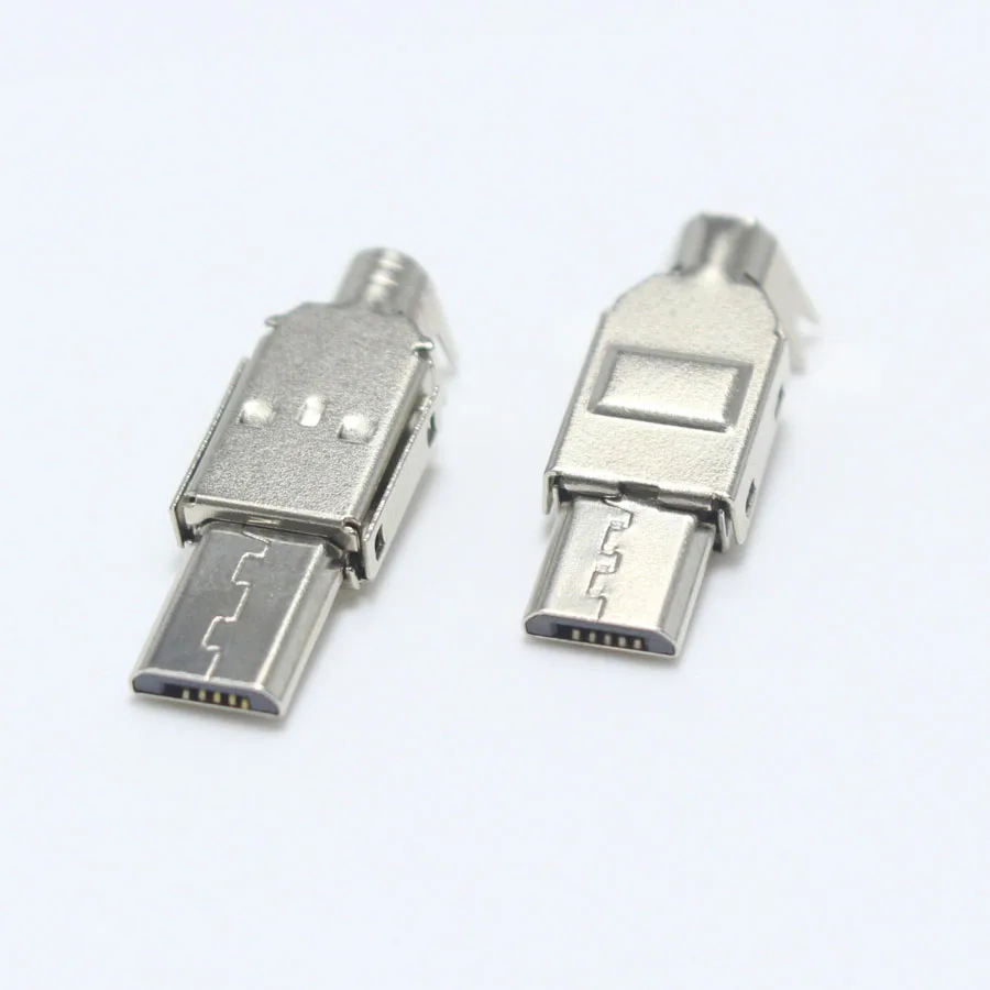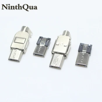 NinthQua 10set Micro USB 5PIN Welding Type Male Plug Connector Charger 5P USB Tail Charging jack 4 in 1 Metal Parts For DIY