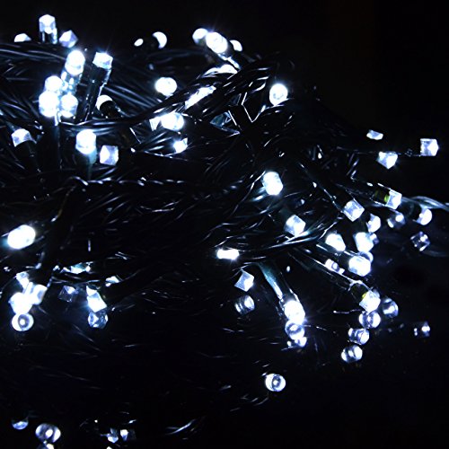 Nipach - Ghirlanda luminosa con 200 LED per interni ed esterni, cavo verde e luci bianche