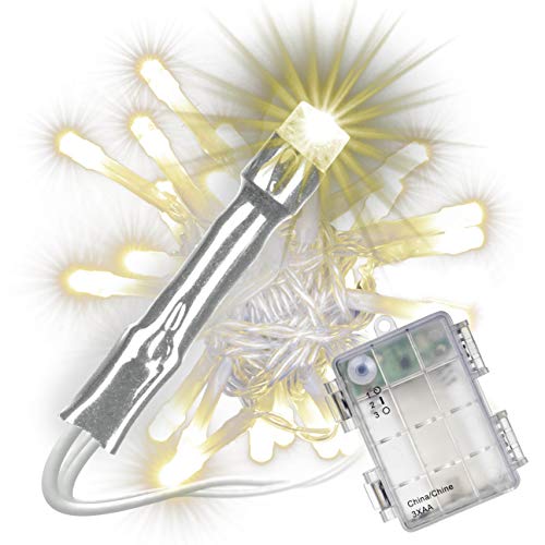 Nipach GmbH Catena Luminosa da 50 LED con Timer Batteria, Bianco Caldo, da Interne ed Esterni, Natalizia, con Cavo Trasparente