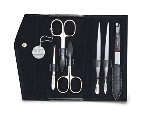 Nippes Solingen, set per manicure da 6 pezzi, colore nero e marrone, 150 g