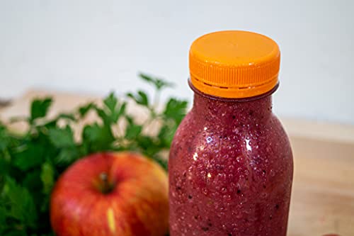 Bottiglie in PET di prima classe per il riempimento - fatte di plastica di alta qualità - sicure per gli alimenti - bottiglie di plastica rotonde e trasparenti con tappo a vite arancione / nero (colore fornito a caso) - volume: 250 ml