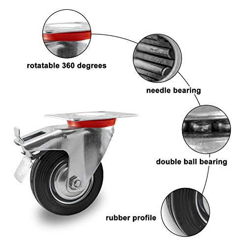 Nirox Set da 4 Ruote per carichi pesanti 160mm - Ruote pivontanti per mobili con freno - Ruote girevoli ruotabili a 360° - altezza totale di 195mm - Rotelle piroettanti fino a 600kg