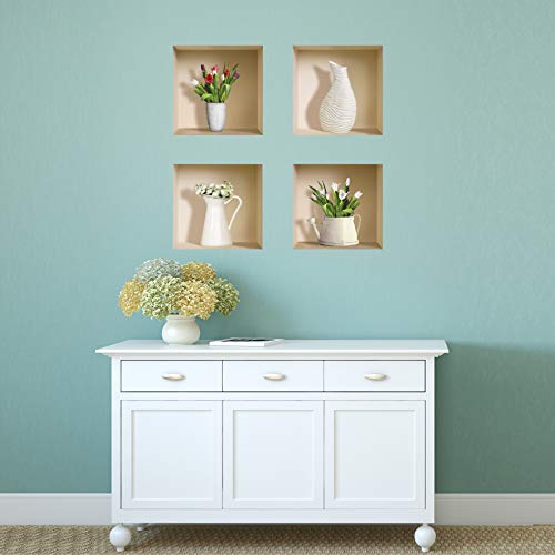 The Nisha Art Adesivi 3D Magici da Muro in Vinile Sticker Decalcomania Fai-da-Te, Set da 4, Vaso bianco e piante verdi