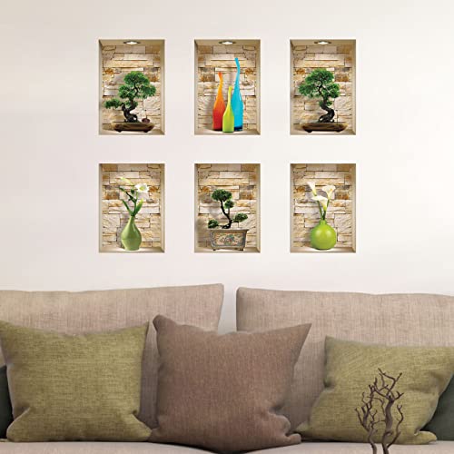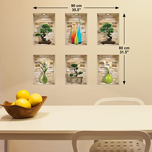 The Nisha Art Adesivi 3D Magici da Muro in Vinile Sticker Decalcomania Fai-da-Te, Set da 6, Pietre Bonsai e Vaso Colorato