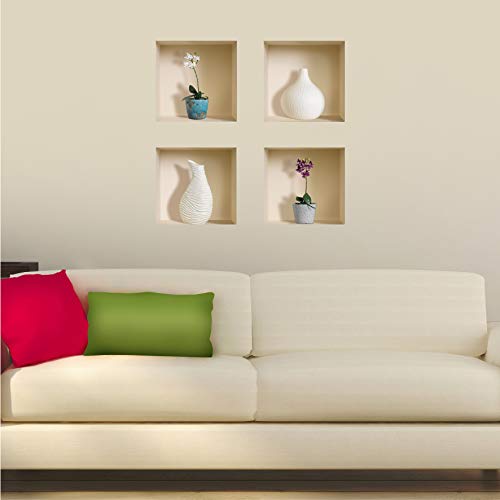 The Nisha Art Adesivi 3D Magici da Muro in Vinile Sticker Decalcomania Fai-da-Te, Set da 4, Orchidea e vaso bianco