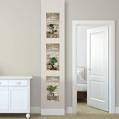 The Nisha Art Adesivi 3D Magici da Muro in Vinile Sticker Decalcomania Fai-da-Te, Set da 3, Pietre Bonsai