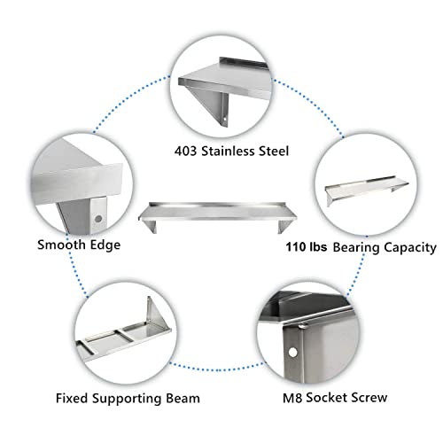 Scaffale stabile in acciaio inossidabile: capacità massima di carico: 49,9 kg. Il fondo del ripiano da parete in acciaio inossidabile è rinforzato con 2 travi fisse per renderlo stabile.