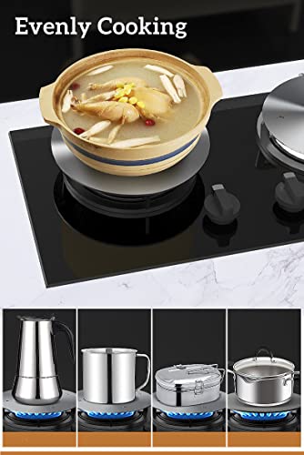 Cucinare uniformemente: Niente più cibo bruciato e puoi praticamente lasciare il cibo sulla fiamma nella pentola con il coperchio e devi solo controllarlo una volta ogni tanto. Riduce e distribuisce il calore in modo uniforme, elimina i punti caldi e impedisce agli alimenti di bruciare. Raggiungi la perfezione di cottura e cottura a fuoco lento con la nostra piastra riscaldante.