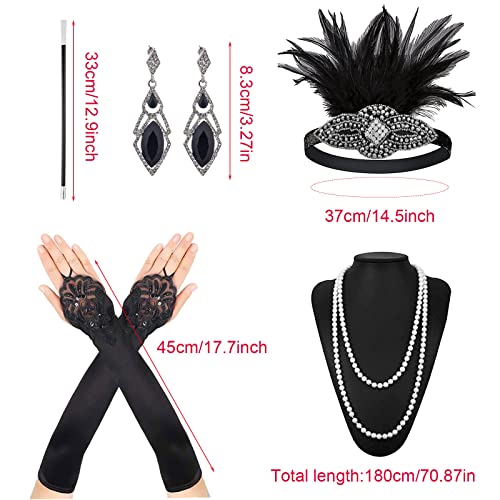 NITAIUN Anni '20 Great Gatsby Accessori Set da Donna, Flapper Accessori Anni '20, 20s Costumi Charleston Accessori, Set di Accessori Anni '20, per Feste a Tema, Natale, Mascherata, Halloween (Set J)