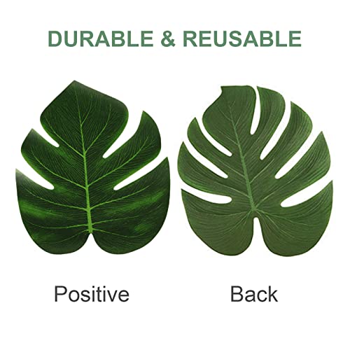 NITAIUN 24 Pezzi Foglie di Palma Finte, Foglie di Monstera Foglie Tropicali Artificiali, 17.5*20cm, per Feste Hawaiane, Giungla, Spiaggia, Compleanno,Coperto All'aperto, Decorazioni Tavola (24 Pezzi)