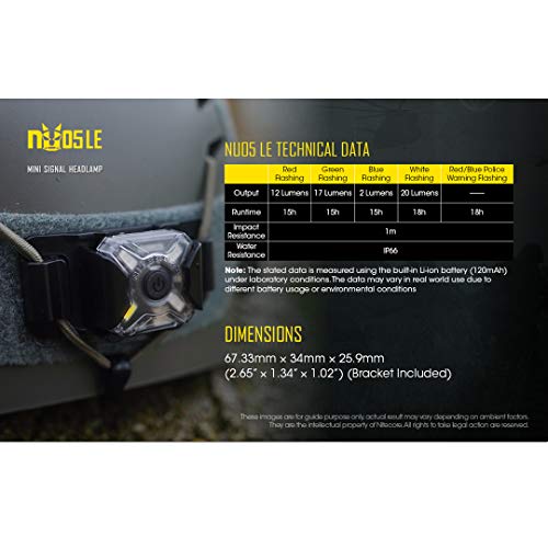 Diverse modalità di lampeggiamento: NU05 LE dispone di 4 diversi LED in un design X compatto: bianco, blu, verde e rosso. Possono lampeggiare indipendentemente o il rosso e il blu possono lampeggiare contemporaneamente.