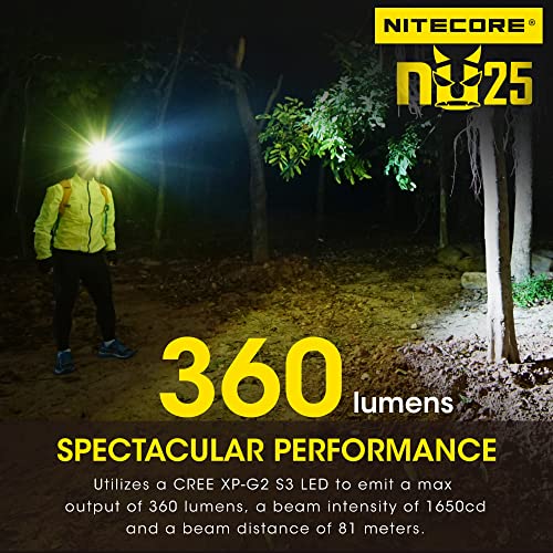 NITECORE NU25 Nero 360 Lumen Lampada frontale leggera 3 sorgenti luminose Faro anteriore ricaricabile USB con etichetta NITECORE