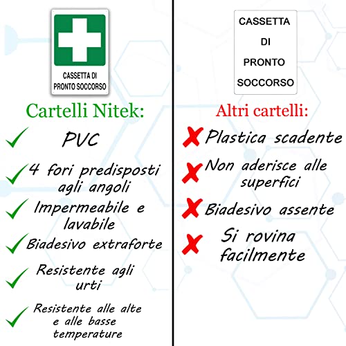 Nitek cartello cassetta pronto soccorso pvc 30cm x 20cm - Cartello auto adesivo| Sign, Schild | Impermeabili Lavabili, Azienda, scuola, pub, cinema