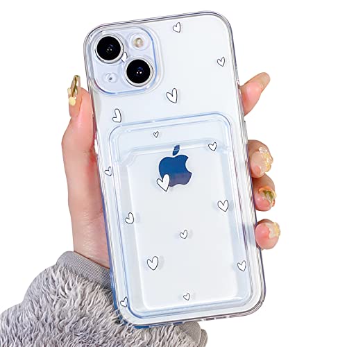 NITITOP Compatibile per iPhone 13 Custodia trasparente con porta carte, motivo a cuore carino design amore per donne ragazza, custodia protettiva morbida TPU antiurto per iPhone 13-cuore bianco