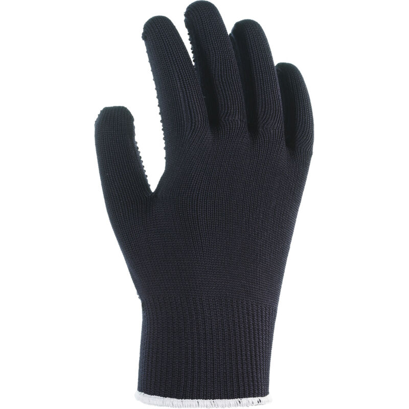 6101. Guanto in maglia fine in cotone/nylon blu scuro, su un lato con puntinatura blu in PVC. Uso: Preparazione dell'ordine, spedizione, montaggio di precisione. Dati tecnici Colore blu scuro Tecnologia di lavorazione a maglia 10G Materiale supporto Cotone Rivestimento PVC EN 388 2142X Materiale Cotone Tipo di prodotto Guanti multiuso Peso g 28,2 Contenuto 12 Utilizzo riutilizzabile Categoria di protezione Categoria II Tipo di guanto Guanti di cotone Privo di siliconi no Misure guanti da lavoro 8 Materiale rivestimento PVC Protezione contro il calore non disponibile Traspirazione Ottima Sensibilità tattile buona Presa da bagnati moderata Presa se sporchi d'olio moderata Privi di DMF sì Indossabilità buona
