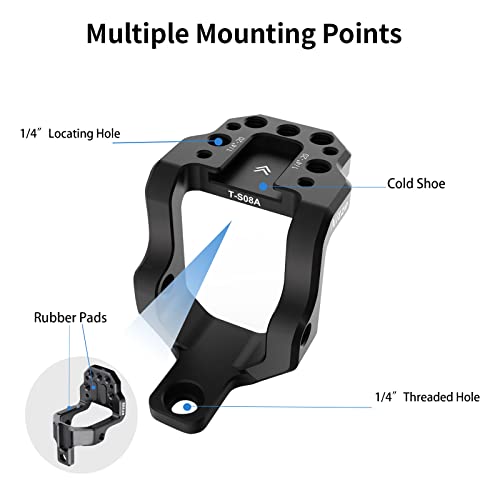 【Punti di Montaggio Multipli】Ci sono molti fori filettati da 1/4", fori di posizionamento da 1/4" e una cold shoe per l'espansione degli accessori, come luci a LED, trasmettitore wireless, monitor, ecc.