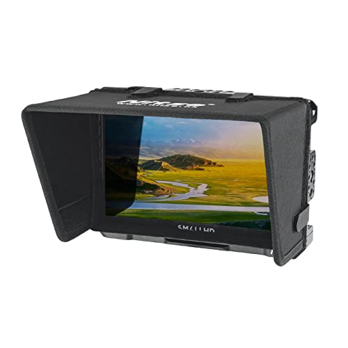 【Cappuccio parasole】 Il parasole incluso previene i riflessi sul monitor e rende il display chiaramente in condizioni di luce abbagliante durante le riprese.