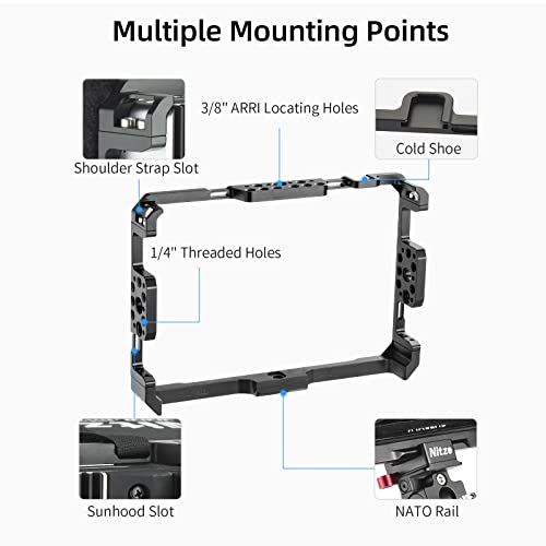 【Materiale in lega di alluminio】 La gabbia Nitze per il monitor touch SmallHD Indie 7/702 è realizzata in lega di alluminio anodizzato per leggerezza e durata.