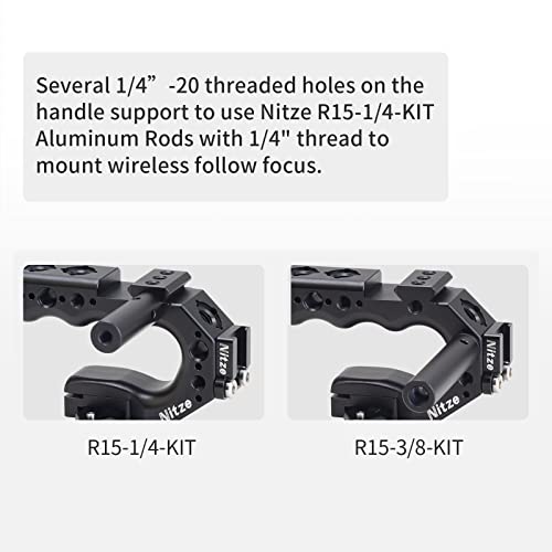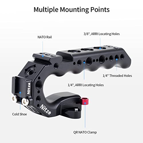 【Punti di Montaggio Multipli】 L'impugnatura Nitze Stinger PA28-A è riempita con fori filettati da 1/4 "-20, fori di localizzazione da 1/4", fori di localizzazione ARRI da 3/8" tutto attorno all'impugnatura per ulteriori espansioni degli accessori.