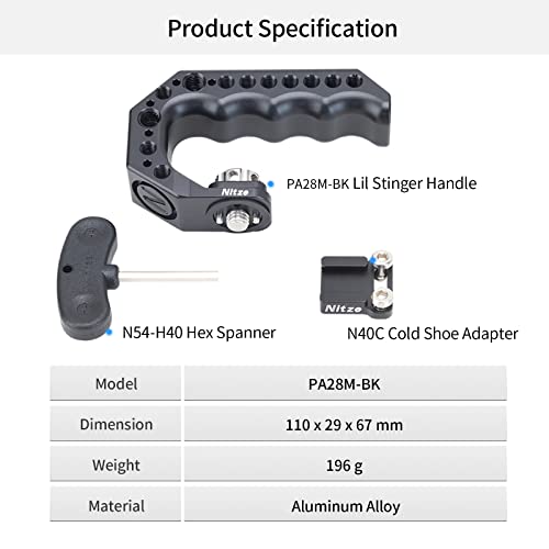 【Punti di montaggio multipli】 La mini maniglia stinger Nitze PA28M-BK è riempita con fori filettati da 1/4 "-20 e fori di posizionamento ARRI tutt'intorno all'impugnatura per ulteriori opzioni di fissaggio e operazioni fai-da-te e collega una varietà di accessori per l'espansione.