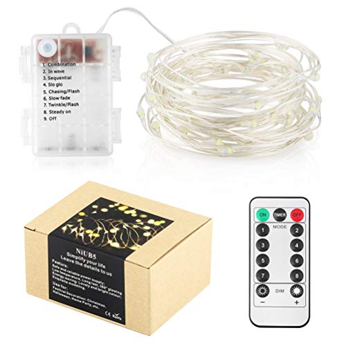 NiUB5 Fata a batteria con telecomando e timer, 5 m, 50 LED su filo argentato