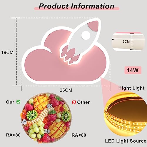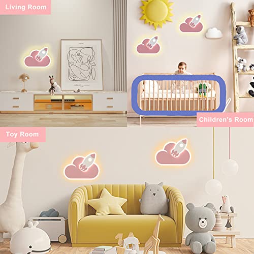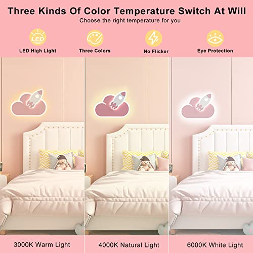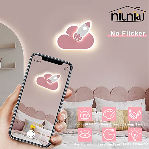 Niuniaj Applique da Parete Interno 14W 1550LM Lampada da Parete Interno a Forma di Nuvola,Bianco Caldo Bianco Neutro Bianco Freddo Tricolore, Applique Cameretta Bambina/Bambino (Rosa)
