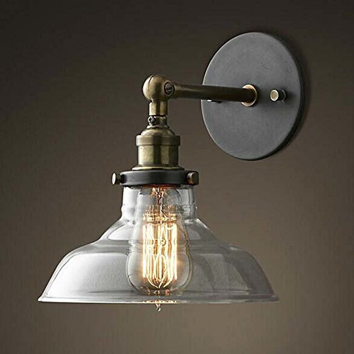 NIUYAO Lampada da Parete Industriale Paralume Ciotola Forma Vintage Metallo&Vetro Wall Light con 1 luce-Nero