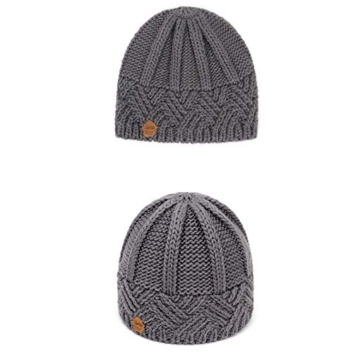 Niuyy Berretto invernale da donna, lavorato a maglia, in pile, a tinta unita, berretto invernale, grigio, Taglia unica