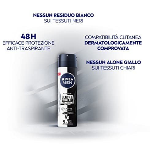 Nivea Men Black & White Invisible Original Deodorante Uomo Spray Antitraspirante 48h Protezione Contro Cattivi Odori Sudore Macchie Residui Irritazioni - 8 Flaconi da 150ml