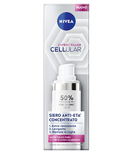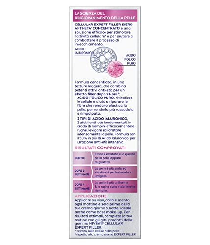 NIVEA CELLULAR EXPERT FILLER Siero viso Anti-Età Concentrato 40ml, Acido Ialuronico rassodante, antirughe con Acido Folico, per una pelle levigata