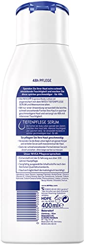 NIVEA - Crema corpo idratante NIVEA Express (400 ml), crema corpo ad assorbimento extra veloce, formula 3 in 1: 48 ore di idratazione, levigatezza e pelle naturalmente bella