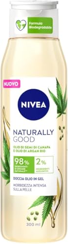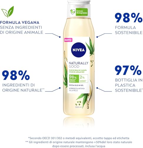 NIVEA Olio doccia in gel Naurally Good 300ml, Gel doccia con Olio di semi di Canapa e Olio di Argan Bio, Bagno doccia in gel nutre donando morbidezza alla pelle