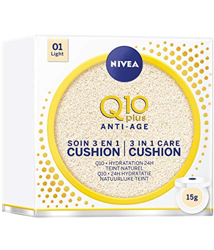 Nivea Q10 Plus Anti-Age 3 in 1 Skin Care Cushion Light, trattamento viso anti-età per donna, fondotinta per tutti i tipi di pelle, makeup idratante (1 x 15 ml)