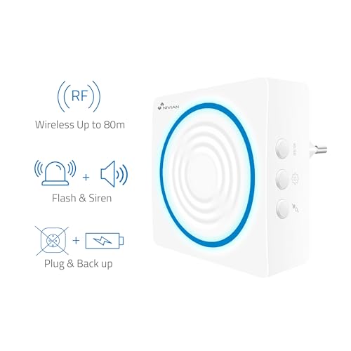 Nivian - Sirena wireless compatibile con allarme Nivian - Adatto per uso interno-Luce e allarme acustico da 90 dB -Include batteria di backup-Facile installazione senza cavi