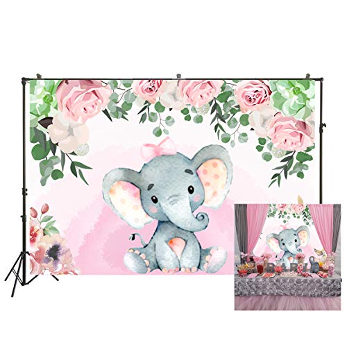 NIVIUS PHOTO Rosa Baby Shower Sfondo Baby Girl Doccia Partito Regalo Bambino Elefante Dessert Tavolo Sfondo Rosa Rose Intorno Design 220x150cm W-1540