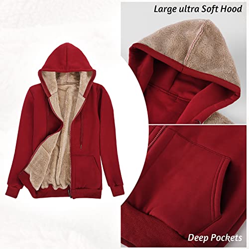 Niwicee Felpe con Cappuccio Donna Pullover Addensato da Tenere al Caldo Sweatshirt Maglione Manica Lunga Cappotto Hoodie Felpa in Pile Serie Plus Pullover Cotone Zip-Rosso-XXL