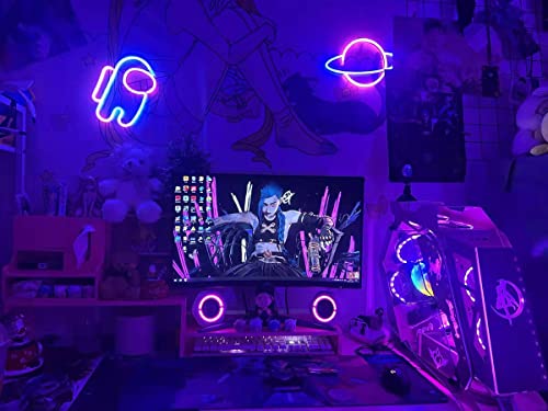NIWWIN Luce Neon Pianeta Blu,luce di segnalazione al neon, Esports Room Atmosfera Luce,Alimentazione a batteria USB/3 AA,decorazione della stanza dei bambini, regalo di compleanno di Natale.