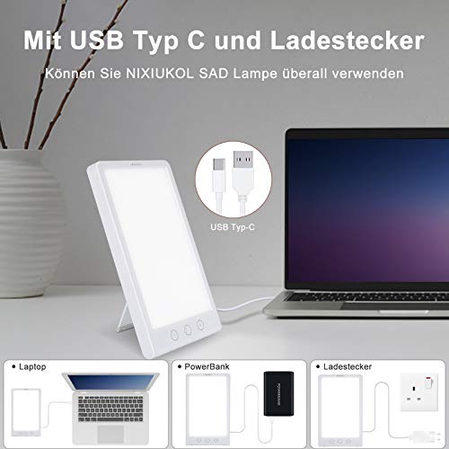 NIXIUKOL Lampada per Terapia Della Luce 10000 lux con 3 colori, Lampada Fototerapia con cavo USB portatile con 3 Timer, Dimmerazione continua della luminosità, Combattere la depressione stagionale