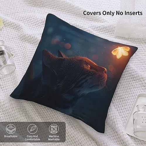 NIXNUT Federa per cuscino in velluto con stampa di gatto con farfalla e luce, federa decorativa in velluto leggero di lusso, adatta per divano, soggiorno, letto