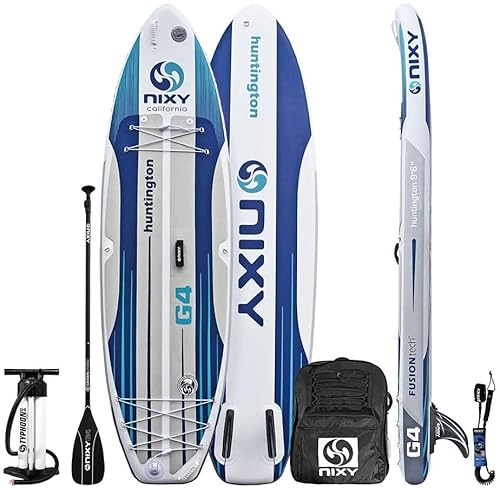 NIXY Huntington - Tavola da SUP gonfiabile, ultra compatta, 9'15,2 x 81,3 x 15,2 cm, leggera, realizzata con doppio strato in tessuto a punto goccia, include pagaia ibrida in carbonio, pompa e borsa
