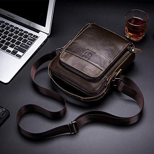 NIYUTA Uomo Borse A Spalla Casuale Tela Borsa A Tracolla Messenger Bag IT1056 caffè