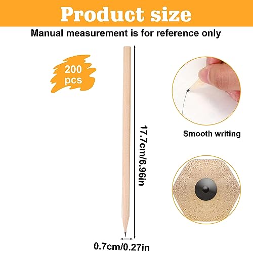 Nizirioo Set di 200 matite in legno naturale HB, 17,7 cm x 0,7 cm, matite in legno naturale, matite per bambini, studenti, ufficio, materiale scolastico